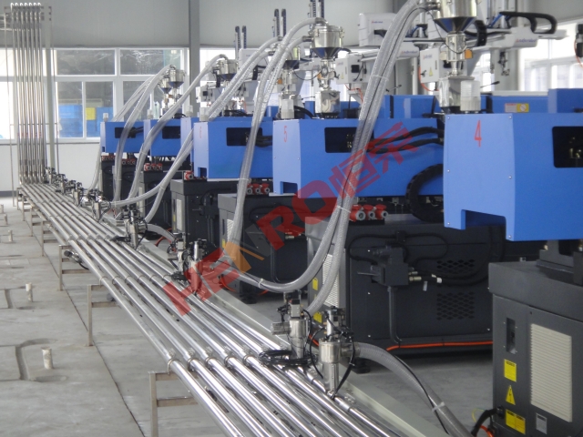 4. 可實(shí)現(xiàn)將多種原料自動供給多室任意的注塑加工設(shè)備使用,在這其中可包括原料的干燥處理、配色處理以及按比例的粉碎回收料利用,能夠?qū)嵭懈叨鹊淖詣踊刂?、監(jiān)測等,并能滿足注塑車間24小時(shí)不停機(jī)的生產(chǎn)需要。