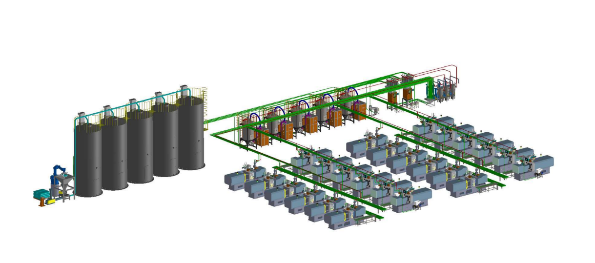 二、 缺點(diǎn)就是集中供料系統(tǒng)的前期設(shè)備采購和安裝成本相對單機(jī)供料設(shè)備成本又高。